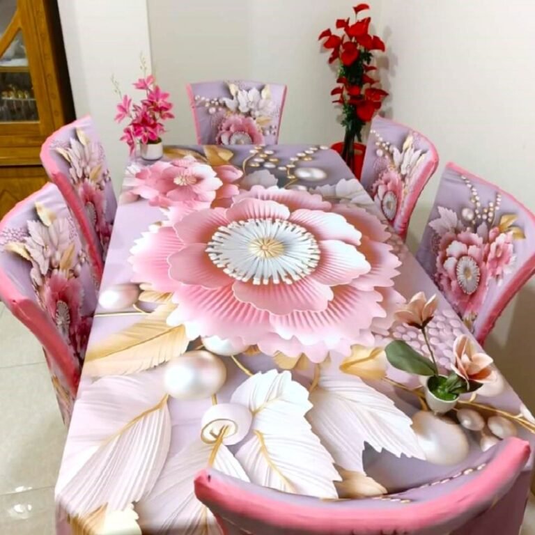 3D Print Dining table Cloth and 06 pieces chair cover Full Set-01