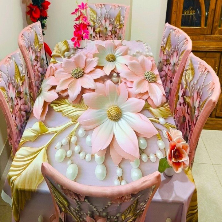 3D Print Dining table Cloth and 06 pieces chair cover Full Set-07